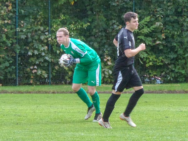 Das Spiel ist erst ein paar Minuten alt, als der Heider SV seine erste Großchance verbuchen kann. Nach einer schönen Kombination ist der gegnerische Stürmer in aussichtsreicher Schussposition, jedoch ist Kevin zur Stelle und pariert den Ball sicher. Ein großes Lob geht an dieser Stelle an unseren Keeper (und natürlich an Tw-Coach Delf), der wirklich einen großartigen Tag erwischt hat und sich mehrfach auszeichnen konnte. So wie auch in der nächsten Szene: Freistoß für den HSV aus halblinker Position nahe der Strafraumkante. Kurz: gefährlich. Dieses Prädikat trifft auch auf den stark getretenen Standard zu, jedoch ist wieder bei Kevin Endstation, der das Ding aus der langen Ecke kratzt. Stark!