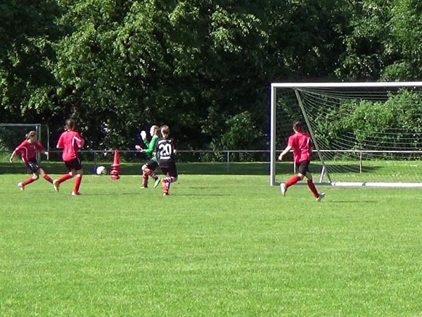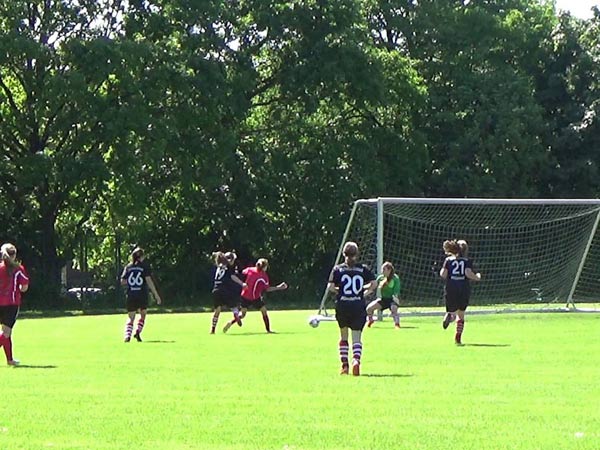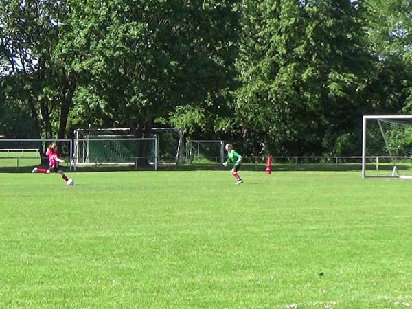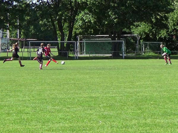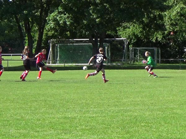 Wir begannen überlegen und erspielten uns einige Möglichkeiten. In der 20. Minute konnten wir endlich durch Luna nach klasse Steilpass von Lisa in Führung gehen. Es folgten bis zur Pause noch zwei weitere Treffer von uns bei einem Gegentor. Aus unseren zahlreichen Chancen hatten wir bis jetzt viel zu wenig Tore erzielt. Das wollten wir in Durchgang zwei verbessern.