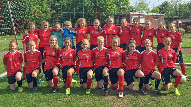 Mit Unterstützung von den C-Mädchen kamen wir heute auf 13 Spielerinnen. Bei strahlendem Sommerwetter übernahmen wir sofort das Kommando und starteten Angriff auf Angriff. In der 4. Minute trafen wir auch schon. Laura schickte Amelie steil, die sich die Chance allein vor dem Tor nicht entgehen ließ. Das 2:0 ließ bis zur 21. Minute auf sich warten. Greta spielte eine Ecke kurz auf Svenja, die unter Gegnerdruck wieder auf Greta zurück spielte. Greta zog fast an der Außenlinie nach innen und schoss mit einem Zauberschuss in den Winkel des langen Ecks. Tor des Monats, doch leider gibt es keine bewegten Bilder davon. Wir spielten weiter überlegen und konnten bis zur Pause auf 5:0 davonziehen. Einziger Wermutstropfen in einer klasse ersten Halbzeit war die Verletzung von Lea St., die nicht mehr weiterspielen konnte.