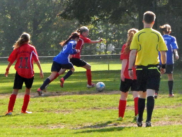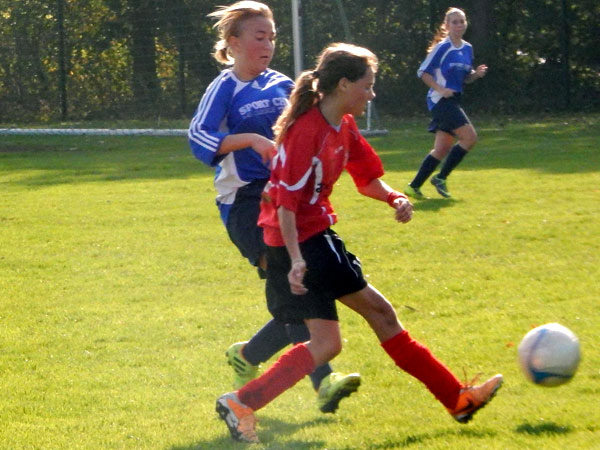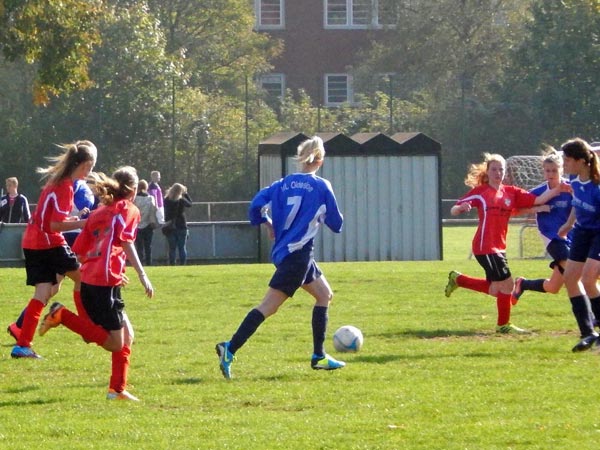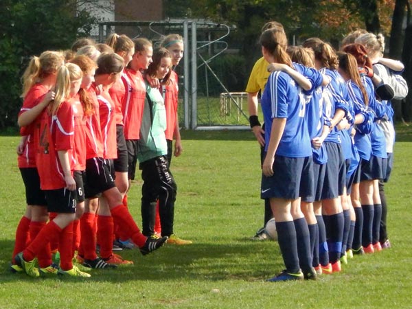 Am Ferienbeginn-Wochenende sorgten einige Mädchen auf Reisen für eine schwierige Kaderzusammenstellung. Durch die Unterstützung von Karla aus den C-Mädchen kamen wir aber auf 13 Mädchen. Da Kapitänin Justina ebenso fehlte wie Stellvertreterin Lynn, übernahm Luna zum ersten Mal in der Saison die Kapitänsbinde. Der Gegner hatte ähnliche personelle Sorgen und reiste nur mit 10 Mädchen an. Aus sportlicher Fairness ließen wir ein zusätzliches Mädchen auf der Bank und spielten auch nur mit 10 Spielerinnen.