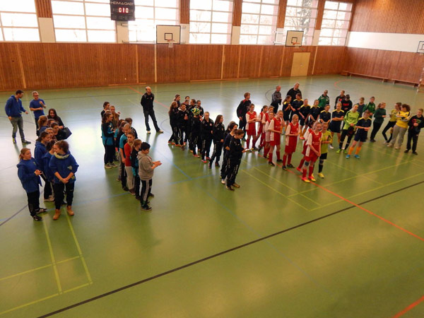 Fazit: Nach zwei guten Turnieren am letzten Wochenende zeigten wir heute eine wechselhafte und insgesamt durchwachsene Leistung. Ob es daran lag, dass wir von Futsal wieder auf Fußball umstellen mussten oder mit dem sehr rutschigen Hallenboden nicht zurechtkamen, bleibt rätselhaft. Ein Grund kann aber auch das Experiment gewesen sein, mit drei Blöcken zu spielen. Eine Einsatzperiode von drei Minuten pro Partie reicht dann wohl doch nicht, um richtig in ein Spiel reinzukommen und verursacht zudem zuviel Unruhe. So nehmen wir mit, dass wir zukünftig wieder mit maximal 10 Mädchen zu Hallenturnieren fahren und weiter an unserer Konstanz arbeiten werden.