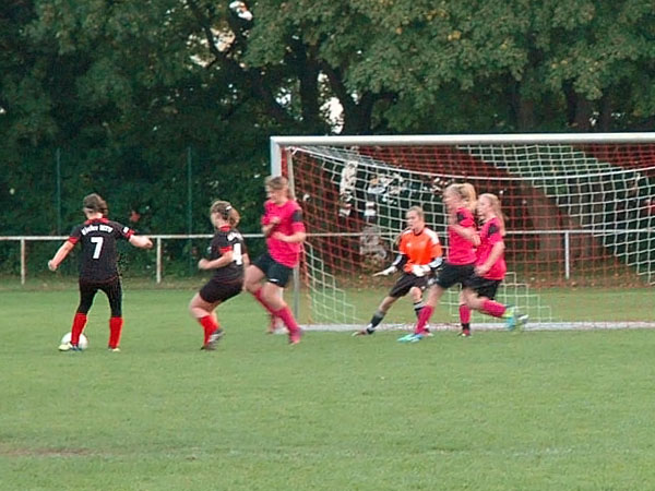 Das Match begann mit wechselnden Torgelegenheiten auf beiden Seiten. Unsere erste große Chance war auch gleich drin. Lynn legte der sprintenden Lea den Ball in den Fuß, diese ließ eine Gegnerin aussteigen und schoss aus 15 Meter zentral ein. Danach verschoben sich die Spielanteile und Möglichkeiten mehr zu unseren Gästen hin. In der 14. Minute konnten wir einen schnellen Angriff über unsere linke Abwehrseite nicht entscheidend stören und der Ball war zum ersten Mal in unserem Tor. Das Kräfteverhältnis blieb leicht zu Gunsten der MSG Selenter See und in der 28. Minute wurde wieder über unsere linke Seite das nächste Gegentor vorbereitet. Eine Gegenspielerin kam bis an die Grundlinie und legte flach vors Tor zur einschussbereiten Stürmerin vor. Mit einem dem Spielverlauf entsprechenden 1:2 ging es für uns in die Pause. Wir hatten die Breite des Spielfeldes viel zu wenig genutzt und manchmal schien es, als würden wir mit angezogener Handbremse spielen. Dies wollten wir in der zweiten Halbzeit ändern.