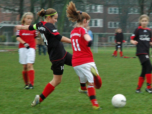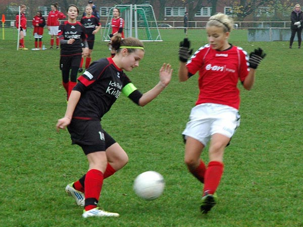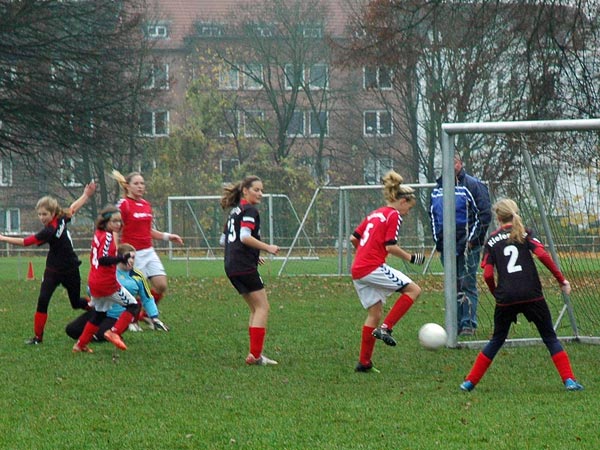 Wieder einmal hatten wir einige Probleme, die Mannschaft voll zu bekommen. Glücklicherweise meldeten sich zwei Mädchen kurzfristig wieder gesund und so konnten wir mit 10 Spielerinnen antreten. Nachdem auch noch schnell ein Schiedsrichter gesucht und gefunden wurde, konnte es losgehen.
