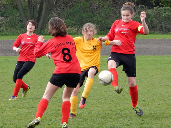 Fazit: In einem ausgeglichenen Spiel hatten wir heute das glückliche Ende für uns. Der starke und böige Wind machte beiden Mannschaften zu schaffen und ließ kein gutes Spiel zu. Die spielerischen Akzente in allen Mannschaftsteilen, die uns den Sieg in Borgstedt gebracht hatten, waren heute Mangelware. Statt dessen machten Momente individueller Klasse den Unterschied. Justinas fulminanter Schuss, Leas bärenstarke Paraden, Lynns Zauberpässe und Lunas Schnelligkeit und Kaltschnäuzigkeit vor dem Tor waren heute unsere Matchwinner.
