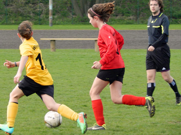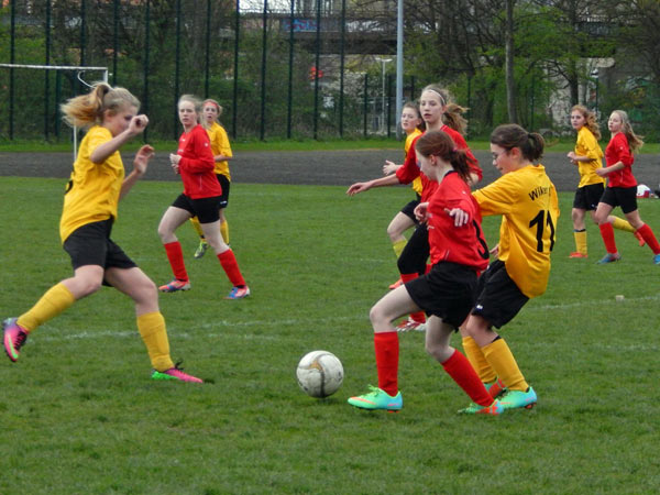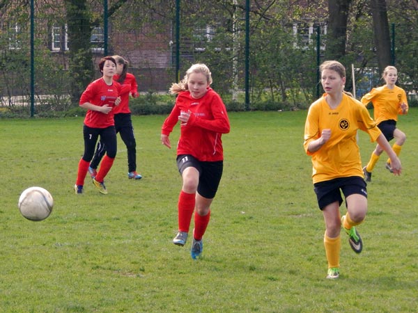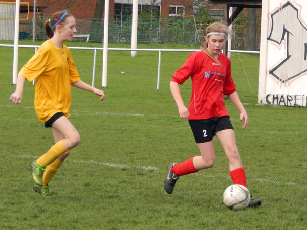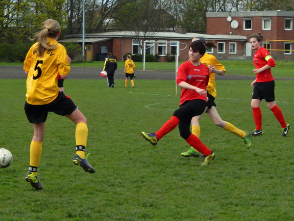 Die Partie begann sehr zerfahren mit leichten Vorteilen für die Gäste. Gegen Mitte der ersten Halbzeit bekamen wir das Spiel besser in den Griff, kamen zu Torgelegenheiten, ohne aber zu glänzen. In der 19. Minute spielte Marit aus unserer rechten Defensive Justina an. Sie konnte viele Meter bis nahe der Strafraumgrenze gehen und hielt einfach aufs Tor. Der fulminate Schuss schlug links oben in den Winkel ein. Ein klasse Tor. Gegen Ende der ersten Halbzeit kam Wik mehrmals gefährlich vor unser Tor, doch dank Leas Paraden im Kasten konnten wir mit einer 1:0-Führung in die Pause gehen.