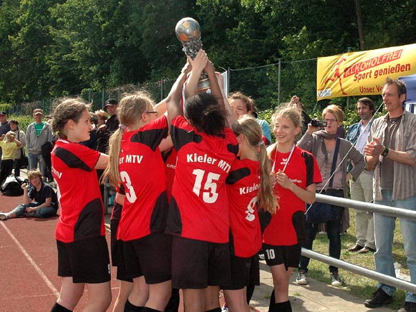 Das Endspiel ist schnell erzählt. Das sehr sympathische Team von BCG Germania Altenkrempe hatte leider gar keine Chance. Von Beginn an kam es zu einem einzigen Sturmlauf des Kieler MTV auf das gegnerische Tor. Fünf Tore konnten wir dabei erzielen. Doch auch unser Endspielgegner durfte in der letzten Spielminute noch jubeln, nachdem ein misslungener Abwurf zum Ehrentreffer führte.