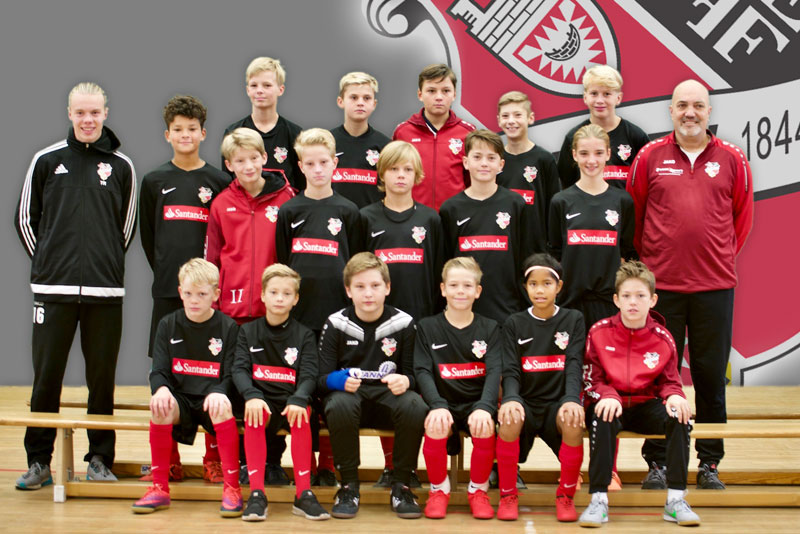 Die 1. D-Junioren des Kieler MTV bedankt sich bei Mark Stammler, dem Filialleiter der Santander Bank in Kiel, für einen sehr schönen neuen Trikotsatz.