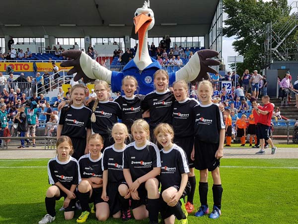 Beim Auftaktspiel von Holstein Kiel in der 2. Bundesliga durften unsere E-Mädchen an den Händen der Holstein-Spieler ins Stadion einlaufen. Das war vielleicht eine Aufregung und alle werden sich noch lange an diesen besonderen Tag erinnern.
