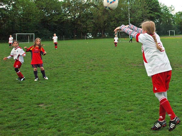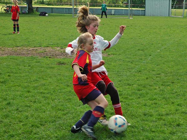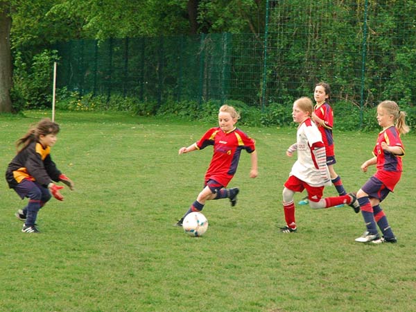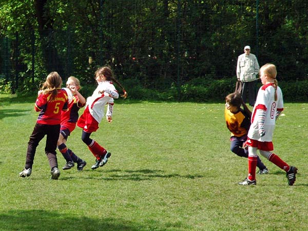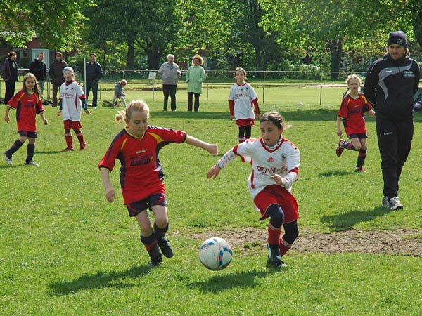 Von Beginn an bestimmten die KMTV-Mädchen das Spiel und starteten einen Angriff nach dem anderen. Gegen die starken Kieler Stürmerinnen Johanna, Elmira und Karla war heute für die gegnerische Abwehr kaum etwas auszurichten. Am Ende stand ein deutliches 7:0 zu Buche. Die E-Mädchen haben damit durch das bessere Torverhältnis die Tabellenführung von Fortuna Wellsee übernommen.