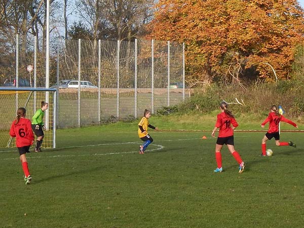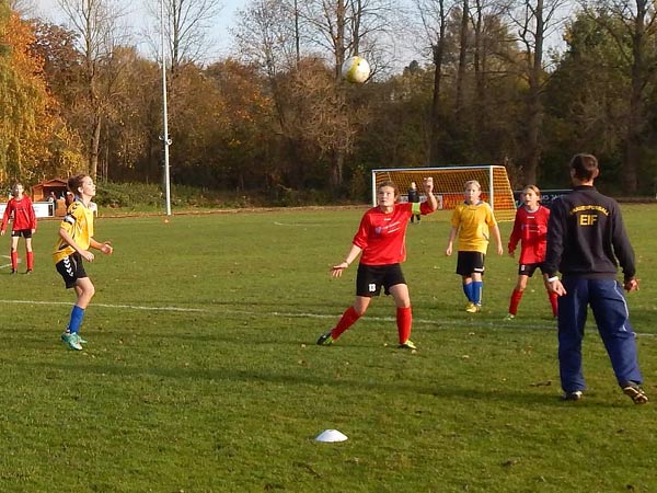 Am vielleicht letzten schönen warmen Herbsttag fuhren wir mit 10 Mädchen nach Eckernförde. Nachdem wir unter der Woche im Trainingsspiel gegen unsere D2-Jungen 2:0 gewonnen hatten und uns dabei jedoch als Meisterinnen im Torchancen-Auslassen präsentiert hatten, wollten wir dies heute besser machen.