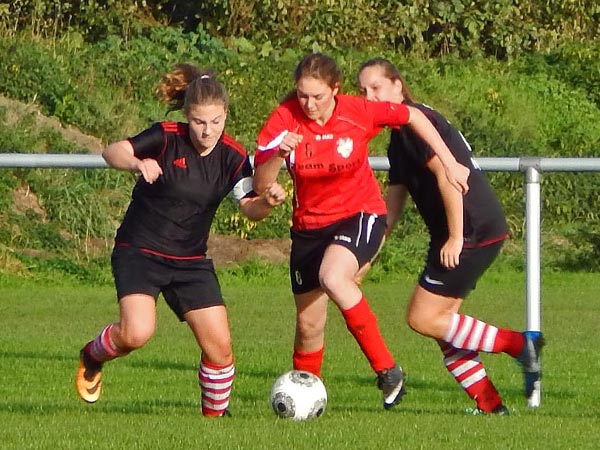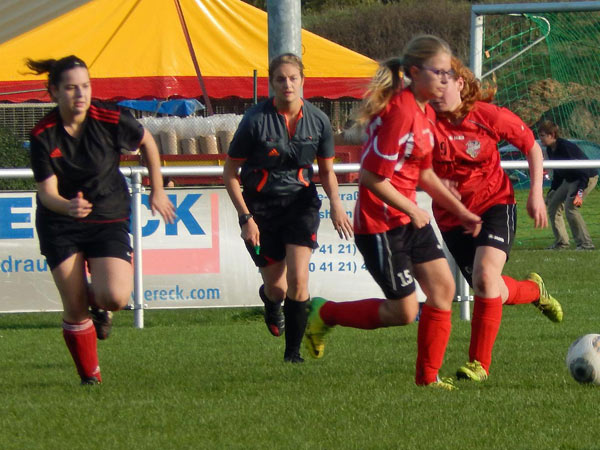 In den ersten Minuten der Partie hatten die Gastgeberinnen leichte Vorteile, ehe wir immer besser in Fahrt kamen. Nach 17 Minuten kam der Dämpfer. Mit einem Doppelpass konnte unsere Innenverteidigung überwunden werden und die gegnerische Angreiferin ließ sich die Chance alleine vor dem Tor nicht entgehen. Der Rest der ersten Halbzeit verlief ausgeglichen mit Chancen auf beiden Seiten, ohne einen weiteren Treffer. Wir sahen einen ausgeglichenen ersten Durchgang auf mittlerem Niveau.