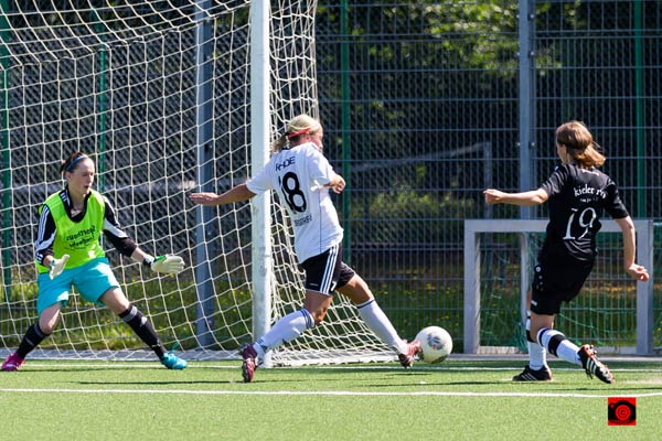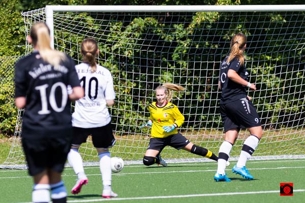 Die Gastgeberinnen waren spielbestimmend und technisch durch die Bank weg sehr ansehnlich. Wir spielten in unserem System hervorragend und arbeiteten vorbildlich gegen den Ball. In der ersten Halbzeit fielen keine Tore, und Bergedorf fand keine spielerische Lösung gegen uns. Im zweiten Abschnitt konnten wir eine Unachtsamkeit Bergedorfs direkt zur 1:0-Führung nutzen. Nicole fängt ein Passspiel ab und und schickt Sabeth, die den Ball clever an der Torfrau vorbeilegt. Weiter ging es, und wir standen nun deutlich höher. Eine gute Erkenntnis konnten wir jetzt schon notieren: Unsere Laufqualität war die Bergedorfs keinesfalls unterlegen und unsere Köpfe sind präsent im Spiel. In der 72. Minute konnten wir dann einmal die Ordnung nicht halten und so ging es sehr schnell durch das Zentrum in die Spitze zu Stejskal, die sich nicht bitten ließ. Louise war noch am Ball, konnte den Ausgleich aber nicht verhindern. Mit zwei starken Paraden hielt uns Louise dann im Spiel und durch Stephanie hatten wir in zwei Spielsituationen die Führung auf dem Fuß. In Minute 76 geht Natalja zielstrebig ins 1-gegen-1 und schießt ab. Die Torfrau pariert stark, Nicole kann den Abpraller dann aber über die Linie schieben. Beim 2:1 blieb es dann für uns, und wir sind einen weiteren Schritt vorangekommen.