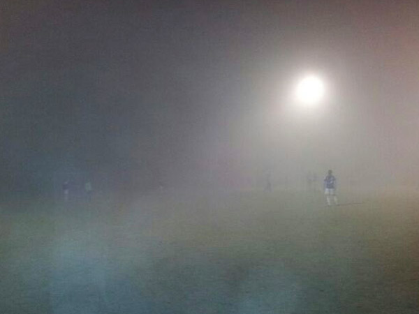 In der 52. Minute bricht der Schiedsrichter das Spiel ab. Die Spielerinnen möchten aber weiterspielen bei einer Sichtweite von 10 Metern. Es folgen noch das 3:0 und 4:0, bevor in der 61. Spielminute die Sicht gleich Null ist und das beeindruckende (Naturschau-)Spiel beendet wird.