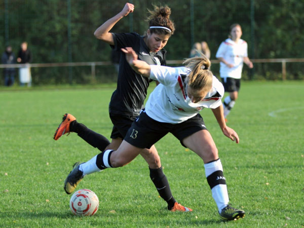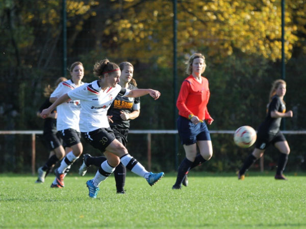 Kaum aus der Kabine zurück, spitzelt Stephanie den Ball im Strafraum quer zu Dorit, die ins 1-gegen-1 gegen die Torfrau läuft und die Oberhand behält. Beim 5:1 ist Stephanie wieder an der Reihe. Im Fokus stand jedoch Nicole mit ihrem Sololauf. Nachdem sich sich erfolgreich gegen zwei Eichholzerinnen durchgesetzt hat, eilt sie auf das gegnerische Tor zu und nimmt die Torfrau aus. Dann noch eine weitere Gegenspielerin vernascht, und das Auge für die freistehende Stephanie im Zentrum, die nur einzuschieben braucht. Klasse Aktion, doch Schluss war ja noch nicht. Leider ließ die heute unsicher wirkende Schiedsrichterin ein deutliches Abseits als Vorteil für uns laufen – aus dieser Aktion entwickelte sich ein Ballverlust, der uns das 2:5 bescherte. Den Schlusspunkt setzte jedoch Nicole, die einen Pass in den Lauf clever zu nutzen wusste. Damit war dann Schluss und wir dürfen uns über weitere 3 Punkte freuen.