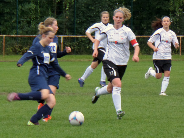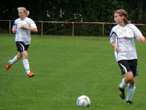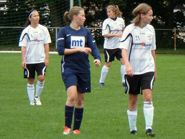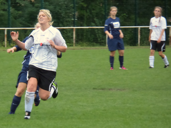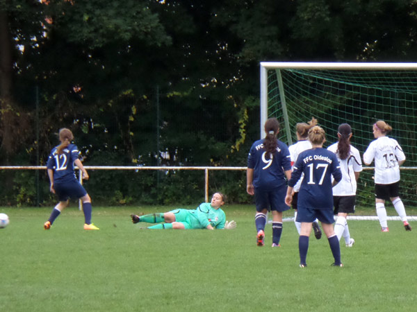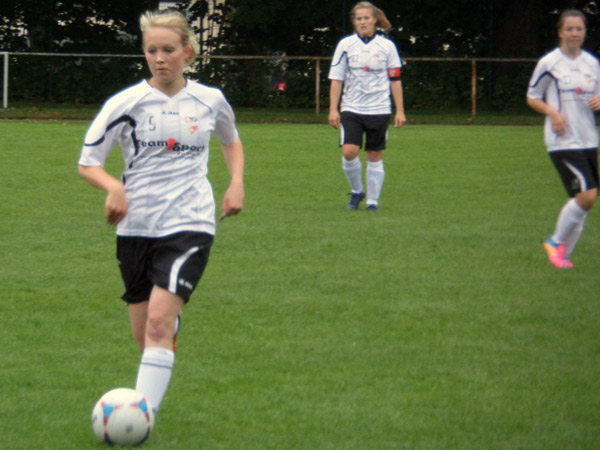 Wir begannen sofort druckvoll zu spielen. Mit viel Tempo ließen wir die jungen Mädels aus Oldesloe nicht ins Spiel kommen und erarbeiteten uns Feldvorteile und ein Chancenplus. Nachdem Nicole eine Großchance an den Pfosten setzte und Johanna nach einer guten Aktion an der Torhüterin scheiterte, machte es Aila in der 16. Minute besser. Sabeth spielt mit links den Ball diagonal in die Schnittstelle und Aila legt den Ball an der Torhüterin vorbei zum 1:0. Wir spielten nun sicherer durchs Mittelfeld und dominierten das Spiel. Defensiv leisteten wir in allen Mannschaftsteilen eine ansehnliche Vorstellung. Und so war das 2:0 kurz vor der Pause auch folgerichtig, wenngleich Oldesloe gerade besser ins Spiel kam. Nicole wurde dabei mit einem klasse Querpass von Johanna bedient, ließ die Torhüterin liegen und schob ein.