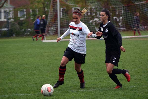 Am Mittwoch waren wir dann auf der Waldwiese zu Gast und konnten auch hier einen ungefährdeten Sieg gegen die Reserve von Holstein Kiel einfahren. Kapitänin Maj, Lefke und zweimal Hannah hießen die Torschützinnen in einem Spiel, welches wir deutlich höher hätten gewinnen können oder vielleicht auch müssen. Die Beine waren schon etwas schwer und die Spritzigkeit fehlte fast komplett. Die kollektive Stärke allerdings war zu deutlich und wir konnten uns früh darauf einstellen, dass wir auch die zweite Etappe erfolgreich beenden würden. In Minute 83 dann doch eine unglückliche Situation – Holsteins Angreiferin auf dem Weg zu Sandras Tor, die den Schritt raus wagt. Es kam zum Zusammenprall und der Schiedsrichter entschied auf Rot für Sandra. Wir dezimierten uns also vor dem Kracherspiel gegen den amtierenden Meister aus Ratekau.
