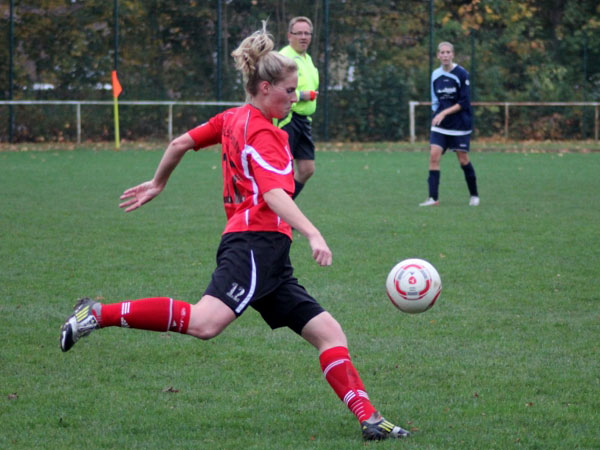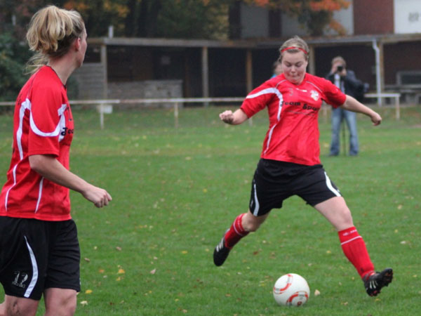 Leider mussten wir gleich zu Beginn einen sehenswerten Sonntagsschuss zum 0:1 hinnehmen. Wieder liefen wir einem Rückstand hinterher, spielten jedoch weiter motiviert und erarbeiteten uns einige Möglichkeiten. Daniela spielte ein tolles Diagonalspiel in Gesas Lauf – alleine vor der Torfrau setzte Gesa den Ball rechts am Tor vorbei. Kurz darauf bekommt Imke die riesen Möglichkeit zum Ausgleich. Wieder allein in Richtung gegnerische Torfrau schloss sie nicht gezielt genug ab. Und weil aller guten Dinge drei sind, kam auch Nicole noch zu einer 100% Chance. Anscheinend sollte das Tor heute nicht fallen und die Strafe folgte auf dem Fuß. In der 35. Minute kassierten wir das 0:2. Aila konnte noch einen Fernschuss auf die Torfrau platzieren und ein Freistoß von Aila ging knapp rechts am Tor vorbei. Spielerisch war Ratekau in der ersten Halbzeit besser, die besseren Chancen hatten jedoch wir.