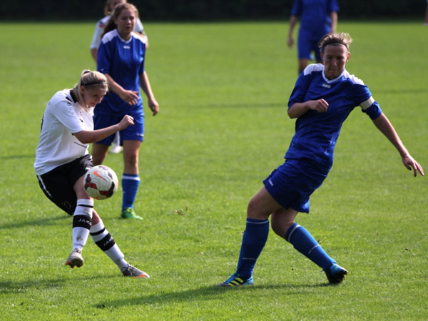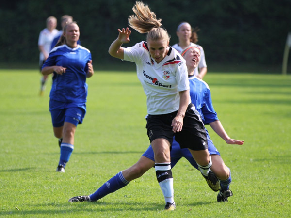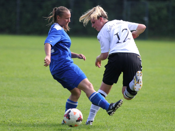 Wir agierten gleich zu Beginn konzentriert, aber dennoch mit vielen kleinen Defiziten. Die Motivation war allen anzumerken und jede wollte das Optimum – wohl auch ein Grund für das zu hektische Spiel unsererseits. Henstedt stand recht tief und überspielte häufig das Mittelfeld. In der Spitze mit K. Patzke und M. Tiarks natürlich stark besetzt versuchten sie mit langen Bällen ihr Glück. Wir hatten die Situationen sehr gut im Griff, bis in der Spieleröffnung ein Passspiel erobert werden konnte und dann ging es schnell: Patzke mit großen Schritten an Andi vorbei zum 1:0. Diese individuelle Qualität ist schwer zu verteidigen. Wir blieben ruhig und erspielten uns nun auch einige Möglichkeiten. Zu einem Torerfolg reichte es jedoch bis zur 24. Minute nicht. Dann spielt Stephanie eine Ecke auf den kurzen Pfosten, wo der Ball über Umwege auf Carolins Fuß fällt. Eine kurze Bewegung und der Ball ging straff ins Netz zum verdienten 1:1. Bis zur Pause gab es Chancen auf beiden Seiten, sodass das Unentschieden hier auch in Ordnung geht.