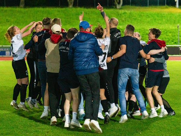 Wir gratulieren der Mannschaft und dem Trainerteam und wünschen viel Erfolg für die anstehenden Aufgaben. Am Pfingstmontag geht es nach Malente zum Finale des Flens-Cup, bevor es am 2. Juni (Hinspiel in Schilksee um 14 Uhr) und 9. Juni (Rückspiel in Eimsbüttel) gegen den Meister der Oberliga HH vom Eimsbütteler TV um den Aufstieg in die Regionalliga geht.
