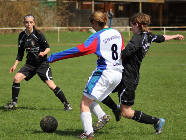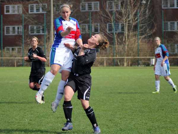 Starke Anfangsminuten mit Chancen für Aila (Freistoß) und Johanna S. (1-gegen-1), aber auch mit einer Glanztat von Johanna L. gegen die starke Kathrin P. Leider kassierten wir in der 20. Minute das 0:1 und noch ärgerlicher waren die zwei Treffer zum Ende der ersten Halbzeit. Phasenweise auf Augenhöhe, empfanden wir den Rückstand als zu hoch. Für uns war es ein reines Kopfspiel und uns war wichtig, unserer Linie treu zu bleiben. Dementsprechend ambitioniert spielten wir weiter und erarbeiteten uns gute Gelegenheiten durch Imke, Nicole und Aila. Das 0:4 kassierten wir durch einen Strafstoß, das 0:5 nach einem Gestochere im Strafraum. Für ein kleines Highlight sorgte Laura mit ihrem Feingefühl, als sie einen Freistoß ins Eck zirkelte und den verdienten Ehrentreffer für uns erzielte. Der KMTV gratuliert dem SV Henstedt-Ulzburg zur vorzeitigen Qualifikation für die Relegationsspiele zur Regionalliga und drückt die Daumen!
