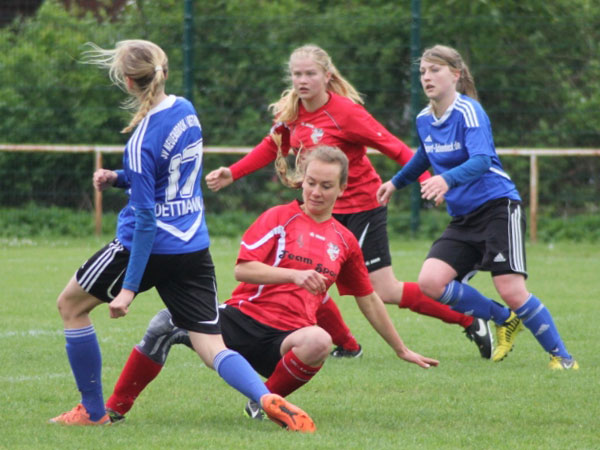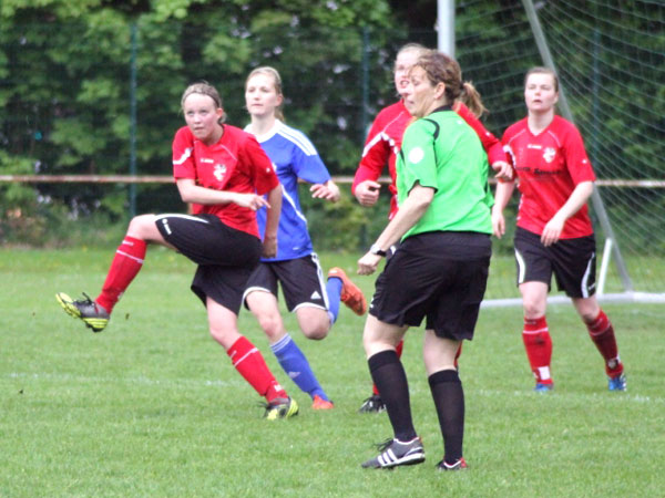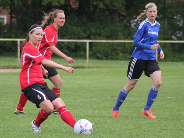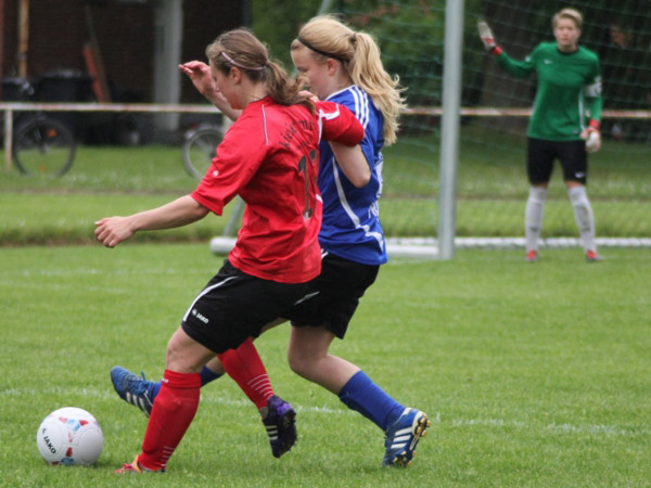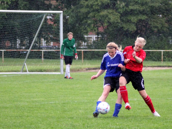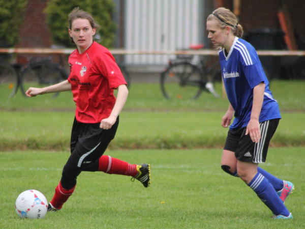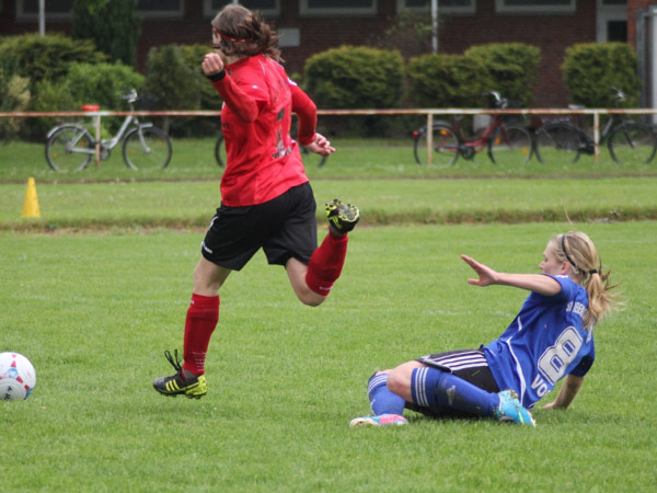 Etwas unorganisiert und nicht in dem gewohnt hohen Tempo agierten wir in den ersten Minuten. Wir kamen über die Außen oft einen Schritt zu spät und liefen im Zentrum zum Teil die Räume nicht optimal zu. Genutzt haben das die vom Abstieg arg bedrohten Neuenbrookerinnen in der 9. Spielminute, als sie am Sechzehner frei zum Schuss kamen. Hoher Ball, bei dem für Kim nichts zu machen war. In der 30. Minute nach einem Freistoß dann das 0:2 – fast eine Kopie des ersten Gegentreffers. Alles sah danach aus, als wenn das Spiel an uns vorbei zu laufen schien. Doch eine klasse Aktion in der 33. Minute brachte uns zurück. Mona spitzelt den Ball durch zu Nicole, die sicher zum Anschluss einnetzte. Vor der Halbzeit dann auch noch das 2:2. Johanna S. bekommt den Ball nach Ecke von Mona an die Schulter und der Ball ging unübersichtlich ins Tor. Damit waren wir zurück und bekamen eine zweite Chance in diesem Spiel.