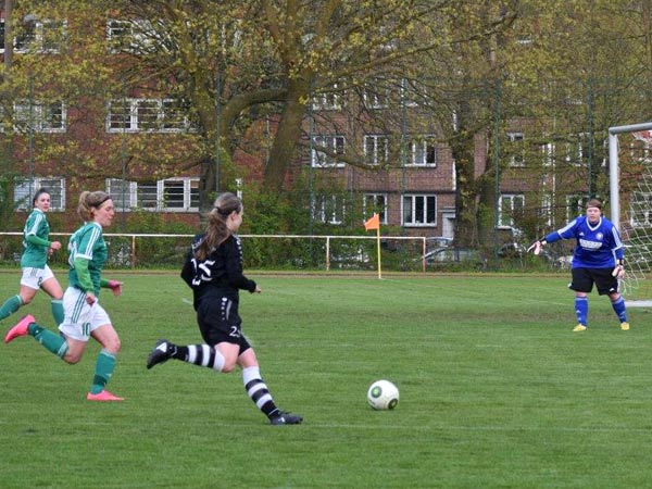 Betrachtet man die Tabellensituation in der SH-Liga, waren unsere Gäste heute die Favoriten. Sieht mach sich allerdings die Bilanzen der letzten Wochen genauer an, so muss man beiden Teams ein Formhoch attestieren. Und genau davon konnten sich die Zuschauer des heutigen Kreispokal-Halbfinalspiels überzeugen. Zwei Teams, die versuchten alles zu geben, boten ein Spiel mit vielen Chancen auf beiden Seiten. Es war ein sehr intensives Spiel mit unheimlicher Laufarbeit unserer Frauen. Top motiviert und mit reichlich Selbstbewusstsein aus den letzten Begegnungen ausgestattet, kämpften wir um jeden Meter. Taktisch haben wir uns sehr gut bewegt, setzten die Vorgaben gut um und machten dem TSV das Spielen sehr schwer. Die alles entscheidende Szene durften wir in der 24. Minute bestaunen. Schneller Tempogegenstoß über Sabeth, die mit klasse Timing Lisa in den Lauf spielt – Lisa versetzt die Torhüterin gekonnt und geht vorbeit, um den Ball konsequent im Tor unterzubringen. Diese Führung sollte bis zum Ende Bestand haben.