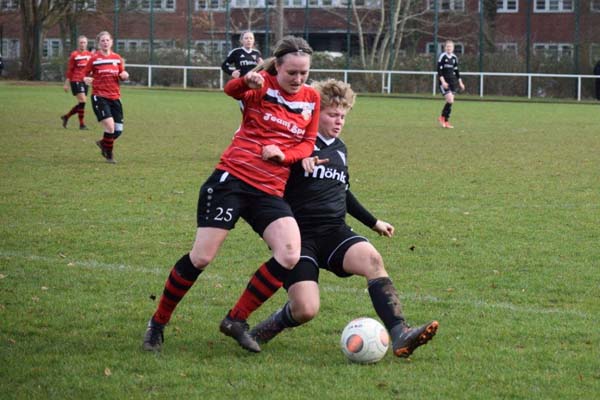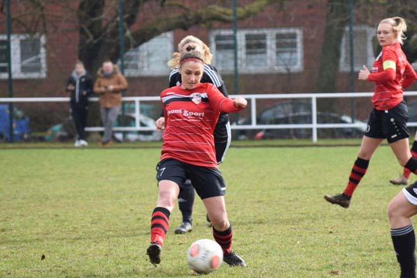 Besonders viel Spielqualität durften wir heute nicht erwarten. Der Platz ist noch im Rohzustand nach dem Winter und wir hatten bis jetzt nur eine Platz-Trainingseinheit, ansonsten nur Indoor-Aktivitäten. Wir stellten uns zudem darauf ein, dass es für Audorf um den Klassenerhalt geht und wie man im Abstiegskampf spielt, haben wir nach den vielen Jahren nicht vergessen. Wir agierten gleich zu Beginn mit jeder Menge Ballbesitz und dominierten das Geschehen auf dem Platz. Die erste Chance bot sich Lefke in der 6. Minute, als sie einen Schuss links am Tor vorbei setzte. Zwei Minuten später setzte sich erneut Lefke auf der rechten Seite durch und kam zum Abschluss. Der Pfosten verhinderte die Führung und auch den Nachschuss konnte Sabeth nicht verwerten. Nach einer Ecke von Lefke bekam Hannah in ihrem Pflichtspieldebüt für den KMTV den Ball vor die Füße, die Torfrau parierte. Für das 1:0 sorgte dann unsere Sandra mit einem eiskalt verwandelten Strafstoß nach Handspiel im Sechzehner. Wir zeigten in der Folge einige tolle Aktionen, das Torepolster wollte allerdings nicht anwachsen und so musste Jasmin nach einer Ecke von Lefke in der 42. Minute für die beruhigende 2:0-Halbzeitführung sorgen. Zugelassen haben wir keine nennenswerte Möglichkeit, was auch für den zweiten Durchgang gilt. Viel Ballbesitz, sehr viele Möglichkeiten durch Annika (48./52. Minute), Cathrin (55. Minute), Natalja (61./74. Minute) und die Erkenntnis, dass es doch sehr schwer sein kann, die Kugel in das Eckige zu schießen. Ein Tor ist uns noch gelungen: Stephanie setzte sich rechts durch und vollendete konsequent. Die Schiedsrichterin nahm den Treffer – für uns schwer nachvollziehbar – wegen Abseits wieder zurück. Ergebnis war somit ein sehr verdientes 2:0 gegen stark kämpfende Audorferinnen.