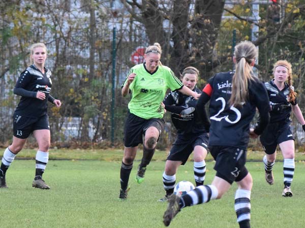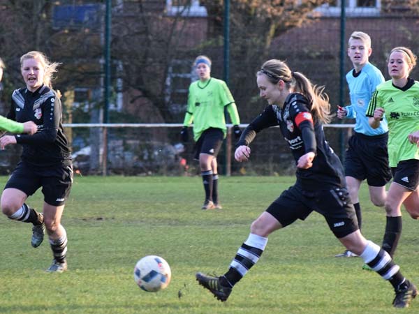 Wir ließen auch gleich gute Möglichkeiten aus und den ersten Konter setzte Schuby in der 17. Minute zur Führung um. Verdient sieht anders aus, aber diese Situation hatten wir schon recht häufig in der Saison. Weiter traten wir dominant. Spielerisch ging auf dem seifigen Untergrund nicht viel, aber die Einstellung war außerordentlich gut und wir versuchten alles, was uns möglich war. So ging es in die Pause und auch im zweiten Durchgang bestimmten wir das Geschehen. Aus einer Unachtsamkeit resultierte das 0:2. Kurios, aber es scheint halt so zu funktionieren, dass man mit wenig Aufwand oft mehr Ertrag herausbekommt. Der Elfmeter sieben Minuten vor Schluss brachte uns durch Lisa nochmal ran, aber wir konnten das Spiel nicht mehr drehen und geben etwas unnötig wieder Punkte ab.