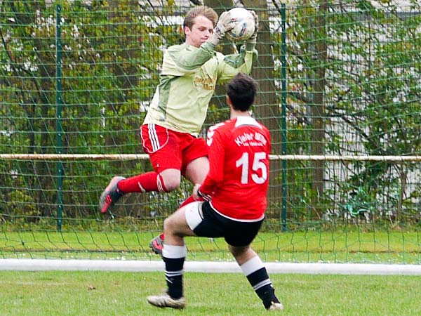 Zu Beginn der zweiten Hälfte kam der Wind nochmal so richtig auf, leider im Rücken von Rot-Schwarz. Das sorgte für anfängliche Verwirrung - so fielen Henners Abstöße kurz hinter dem Strafraum wieder herunter. Doch nach einer kurzen Eingewöhnungsphase hatten wir uns ganz gut drauf eingestellt. Fußball spielen wollte aber auch der Tabellenzweite nicht wirklich - die Bälle wurden größtenteils nur lang nach vorne geschlagen, zwischenzeitlich mit erstaunlich wenig Torgefahr. Gelegentlich rutschte dann doch mal ein Ball durch und es wurde enger. Nach vorn ging bei uns nicht mehr besonders viel. Allerdings kam Tom in der 74. Minute alleine durch, wurde aber im Strafraum vom Verteidiger wieder gestellt. Ob der Querpass nicht doch möglich gewesen wäre?! Kurze Zeit später kam es doch zum Gegentreffer. Verwirrung nach einer Ecke - nach zwei vereitelten Großchancen schmiss sich Henner auch in den letzten Schuss. Der Schiri meinte aber gesehen zu haben, dass der Ball im Tor war. Jetzt kam Rot-Schwarz nochmal mit Schwung, diesmal waren wir aber in der Lage, uns zu wehren. Zwei bis drei Torchancen für RSK gab es noch, so dass wir letztlich mit dem 1:1 zufrieden sein müssen.