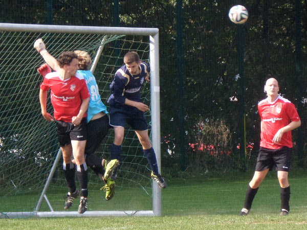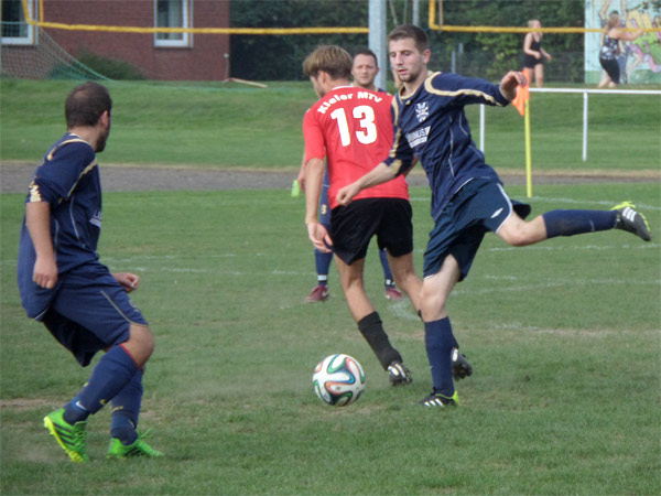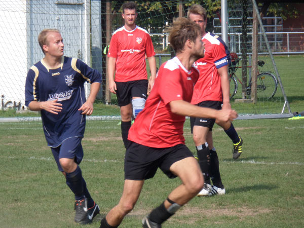 Die Gäste standen sehr tief und wollten vor allem einen frühen Gegentreffer vermeiden, was auch zunächst gelang. Nach knapp 25 Minuten dann aber die Erlösung. Tilmar H. erzielte nach einer Vorlage von Niels F. das verdiente 1:0 und markierte damit seinen neunten Saisontreffer. Das Tor führte dazu, dass Holtenau nun ein bisschen aufmachen musste, wodurch der Tabellenführer auf dem Professor-Peters-Platz zu weiteren guten Chancen kam und 10 Minuten nach dem Führungstreffer das 2:0 erzielte – Moritz K. traf per Kopfball nach einer Ecke von Lars M. Kurz vor Ende der ersten Halbzeit trug sich Lars dann selbst in die Torjägerliste ein. Nach einer umstritten Mitnahme, bei dem viele ein Handspiel vom langen Spielmacher gesehen haben wollten, schiebt dieser den Ball souverän zum 3:0-Halbzeitstand ein und krönt eine gute erste Halbzeit, womit es mit 3:0 in die Pause ging.