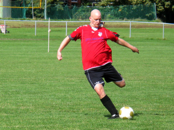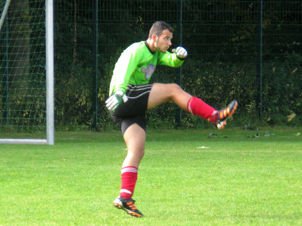 So versuchten wir von Beginn an unser Spiel dem Gegner aufzuzwingen. Leider waren wir nicht so konzentriert in unseren Bemühungen, wie wir es eigentlich wollten. Trotz einiger spielerischer Schwächen ließ wir in der ersten Halbzeit fast keine Tormöglichkeit für Elmschenhagen zu. Auf unserer Seite ließen wir erneut die eine oder andere gute Gelegenheit aus. Ich erinnere mich an einen Schuss von Sebastian, der zur Ecke geklärt wird und eine Kopfballgelegenheit von Jan. Außerdem an einen abgefälschten Schuss von ?, den der Torwart noch gerade vor der Linie halten kann. Und dann war da noch Mike! Mehr sag ich lieber nicht … Jedenfalls hätten wir mit einer Führung in die Pause gehen müssen. So stand es zur Pause leider nur 0:0.