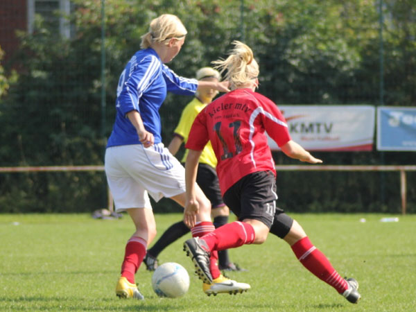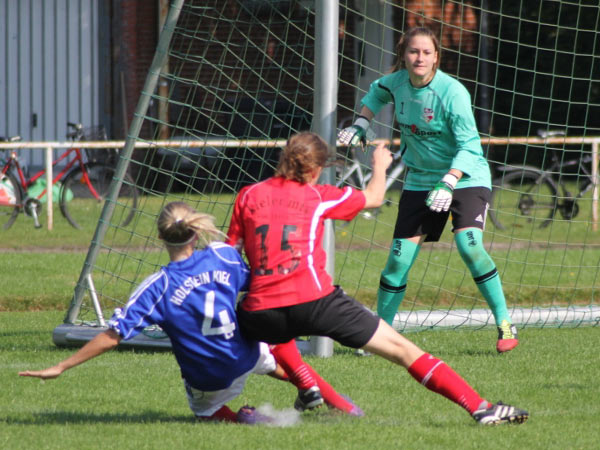 Am dritten Spieltag kam es zum Aufeinandertreffen mit der Reserve von Holstein Kiel. Wir hatten uns einiges vorgenommen, mussten allerdings schnell feststellen, dass uns die Gäste in vielen Belangen überlegen waren. In den ersten Minuten standen wir vernünftig in der Defensive, ein 40-Meter-Schuss traf uns jedoch in der 17. Minute hart und wir liefen einem Rückstand hinterher. Wir erarbeiteten uns sehr wenige Chancen durch Daniela und Aila (27., 34.), ehe Holstein Kiel erneut per Kopf traf. Wir wollten mit dem 0:2 in die Pause, doch das 0:3 fiel noch in der 45. Minute.