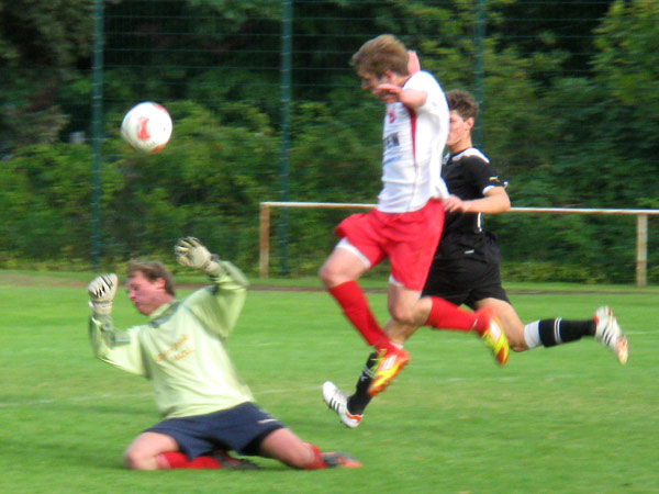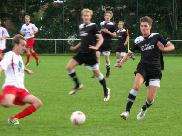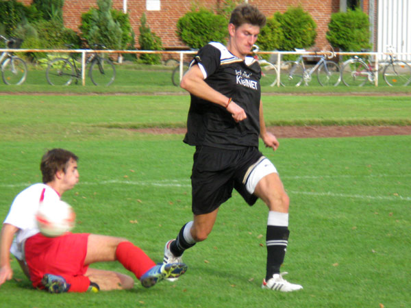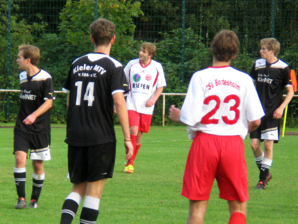 Die zweite Halbzeit dominierte dann der KMTV. Die Halbzeitansprache schien gefruchtet zu haben und so lagen die Spielanteile zwischen der 45. und der 70. Minute mehr auf Seiten der Gastgeber. Leider konnten diese ihre optische Überlegenheit nicht in Tore ummünzen. Es fehlten die gefährlichen Torraumszenen. Meist war am gegnerischen Sechzehner Schluss. Das machten die Gäste besser. Sie konzentrierten sich in der 2. Halbzeit auf die Defensivarbeit und ihr starkes Konterspiel. So hatten sie zwischen der 70. und 75. Minute drei Großchancen, die aber allesamt zum Glück nicht genutzt werden konnten. Jetzt versuchte der KMTV alles und stellte Offensiv auf Dreierkette und drei Stürmer um. Anfänglich zeigte auch diese taktische Veränderung ihre Wirkung und so kam Frank durch die massive Bordesholmer Abwehr durch, wurde aber im Strafraum gelegt. Der Schiedsrichterpfiff blieb allerdings aus. Eine fragwürdige Entscheidung. In der Folge drängten die Gastgeber mit neun Mann in die gegnerische Hälfte. Das 2:2 sollte jetzt erzwungen werden. Doch man verlor den Ball und der Weg zurück wurde als unnötig erachtet. So entwickelte sich eine 7-gegen-2-Situation für die Bordesholmer, die sie durch einen Kopfball zum 1:3-Endstand nutzten.