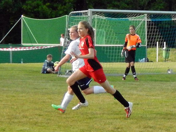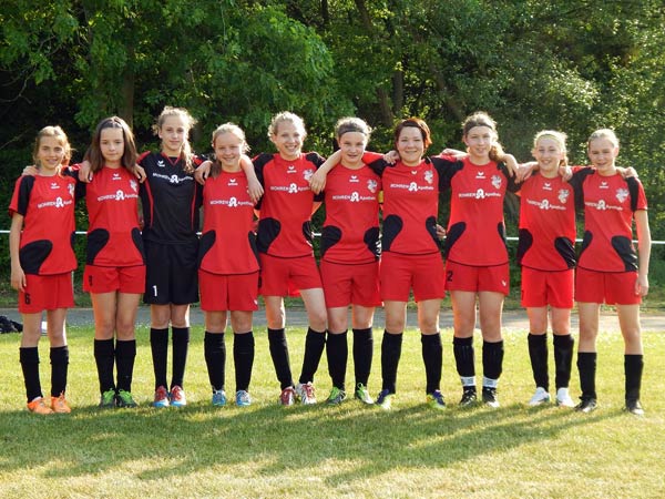 In der zweiten Hälfte wechselte verabredungsgemäß Joana für Lea ins Tor. Hannah konnte mit frisch verbundener Hand wieder ins Spielgeschehen eingreifen. Der Durchgang begann unglücklich, denn wir bekamen drei Minuten nach Wiederanpfiff gleich das 0:1 gegen uns. Eine Ecke flog flach (!) durch den ganzen Strafraum, bis am langen Eck eine Selenterin einschieben konnte. Da sahen wir ganz schlecht aus. Erste echte Chance im Spiel und wir lagen 0:1 hinten. Doch der Rückstand währte nicht lange. In der 46. Minute bekam Lynn kurz hinter der Mittellinie einen Einwurf zugespielt. Sie ließ ihn mit der Brust abtropfen und schlug ihn "blind" hoch in den Strafraum. Vor der Torfrau sprang der Ball auf und senkte sich über sie. Die Torhüterin bekam ihre Fingerspitzen zwar noch an den Ball, doch er prallte vom Innenpfosten ins Tor. Ein kurioser Treffer. Nun waren wir dran und versuchten, den finalen Siegtreffer zu landen. Acht Minuten vor Ende war es dann auch soweit. Hannah setzte sich zentral durch und schickte Luna steil. Hart in Bedrängnis konnte sie ins linke Eck verwandeln und wir lagen in Führung. Diese währte leider auch nicht lang, denn 6 Minuten vor Ende führte ein harmloser Schuss aus der Drehung zum erneuten Ausgleich. Der Ball sprang durch eine Unebenheit auf dem harten Boden vor Joana unglücklich hoch ab und war nicht mehr zu halten.