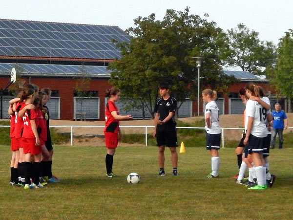 Da unser Gegner nur 7er gemeldet hatte, fuhren wir lediglich mit 10 Mädchen zum Tabellenführer nach Selent. Vorort stellte sich heraus, dass unser Gegner 9er spielen wollte. Sehr ärgerlich, denn zahlreiche KMTV-Mädchen waren einsatzbereit in Kiel geblieben. Mangels genügend Wechselspielerinnen auf unserer Seite blieb es beim ungeliebten 7er.