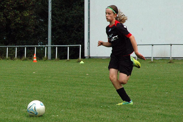 Die Mädchen begannen voller Spielfreude. Uns wurde sehr viel Raum gelassen, so dass wir uns munter durch die gegnerischen Reihen kombinieren konnten. Den Torreigen eröffnete Lynn in der dritten Minute. Bis zur Halbzeit stand es 0:6 und Hannah M., die in der ersten Halbzeit das Tor hütete, hatte keine einzige Ballberührung.