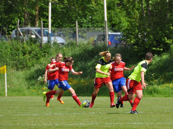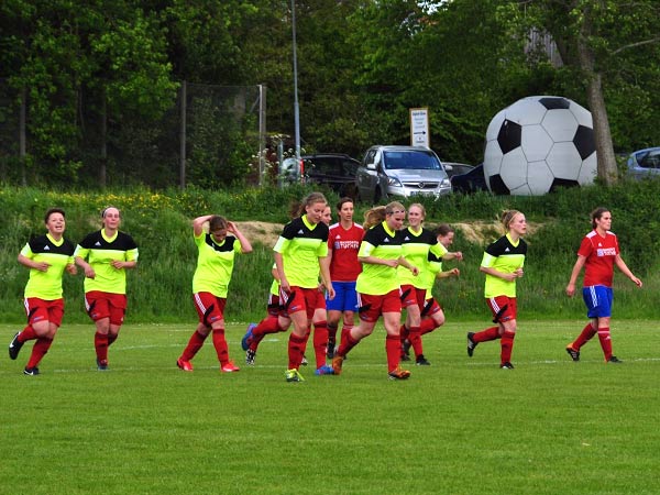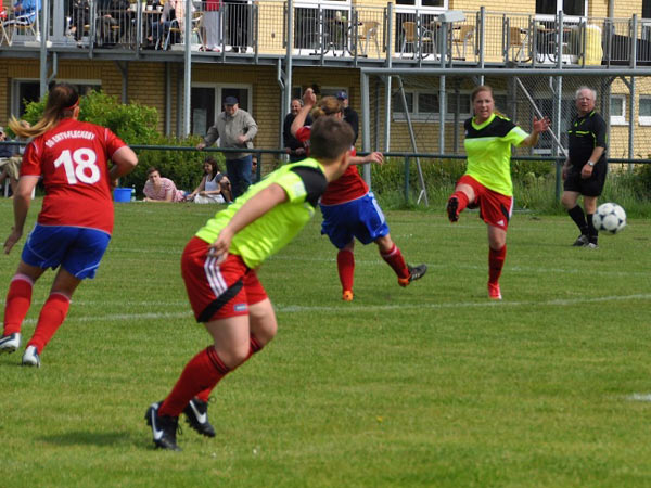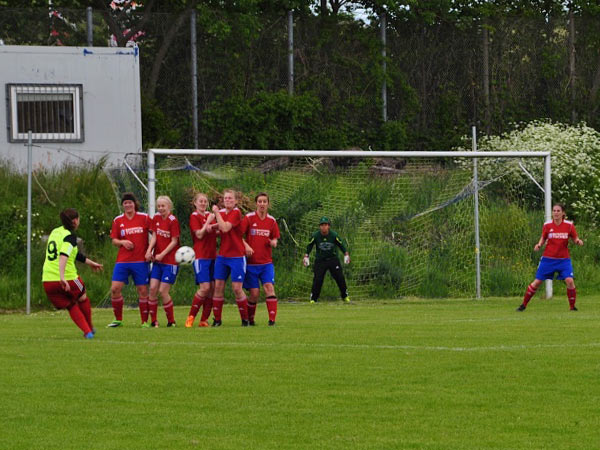 Die Ereignisse überschlugen sich bereits in den ersten Spielminuten, als nach einer unglücklichen Abwehraktion der Ball über Laura zum 0:1-Rückstand ins Tor fiel. Nach diesem Auftakt nach Maß – für den Gegner – mussten wir versuchen, druckvoll wieder ins Spiel zu finden. Viel Nervosität prägte die ersten Minuten auf beiden Seiten und jedes Team versuchte alles in die Waagschale zu werfen, um heute als Sieger vom Platz zu gehen. In Minute 5 hatten wir ordentlich Glück, als Kerstin ein Durcheinander in unserem Strafraum im letzten Moment klären konnte. Das schien uns nun endlich wachgerüttelt zu haben, denn fortan übernahmen wir das Spiel und kamen des Öfteren vor das Tor von Fleckeby. Marie brachte eine klasse Hereingabe über rechts und Sonja verpasste knapp (21.). Celina konnte im Zentrum durch Esther in Szene gesetzt werden und wurde im letzten Moment noch gestoppt (32.). Viel mehr passierte im ersten Durchgang nicht, und so motivierten wir uns in der Kabine für die zweite Halbzeit.