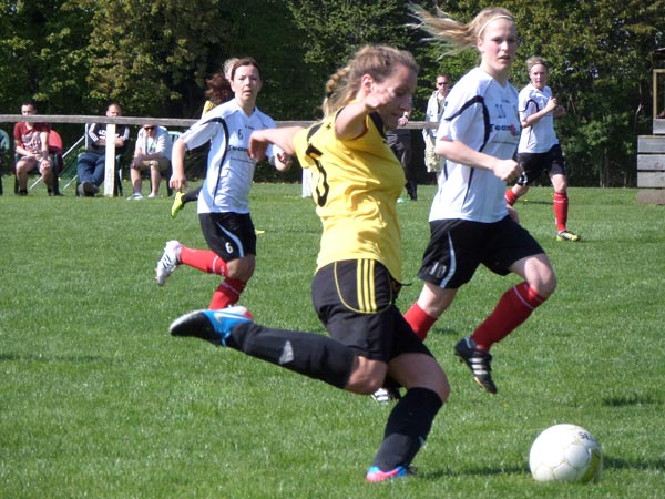In der Kabine wurden einige Dinge besprochen und wir versuchten diese dann in den zweiten 45 Minuten auch umzusetzen. Leider merkte man uns deutlich an, dass wir mit dem Rückstand nicht umzugehen wussten und der Frust darüber, dass in Bösdorfs Reihen kaum ein Durchkommen möglich war, überwog. Einige Starke Aktionen konnten wir dennoch aufweisen. Unsere Offensivkräfte ackerten unermüdlich, konnten jedoch vor dem Tor keine Mittel finden um den Ausgleich zu erzielen. In der 74. Minute muss es einen Handelfmeter für uns geben, doch der ansonsten sehr gut leitende Schiedsrichter übersah das klare Handspiel im Strafraum zur großen Verärgerung der KMTV-Anhänger. Bei dem bisherigen Spielverlauf hätte eine solche Möglichkeit schon spielentscheidend sein können – schade … Wir machten mehr und mehr auf und spielten natürlich hinten auf Risiko. In Minute 85 kommt Bösdorf doch nochmal vor unser Tor. Wir verteidigen in dieser Situation ausgesprochen schlecht und lassen uns das 2:0 einschenken. Damit war nun endgültig alles gelaufen und wir mussten uns den stets aufopferungsvoll kämpfenden Bösdorferinnen geschlagen geben.