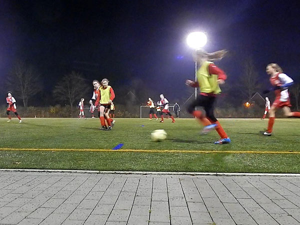 Bei drei abwesenden Mädchen kamen wir nur auf 11 Spielerinnen für die Auswärtspartie in Bordesholm. Da mit Hanna H. und Luna zwei angeschlagene Spielerinnen im Kader waren, startete das Match unter keinen guten Voraussetzungen. Die Bedingungen unter Flutlicht auf Kunstrasen waren für die meisten Kieler Mädchen zwar unbekannt, machten aber Lust auf Fußball. Da Bordesholm souverän die Qualifikation in der Qualistaffel Rendsburg-Eckernförde/Kiel mit Platz 1 geschafft hatte, waren wir auf einen harten Brocken gefasst.