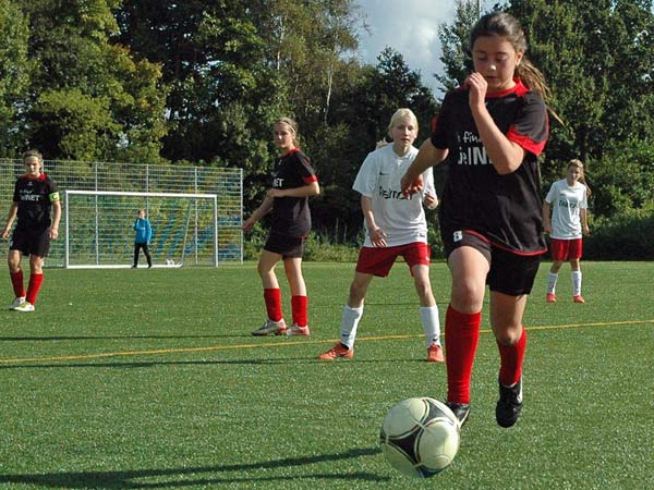 Trotz der guten Vorbereitungen der Woche erwischten wir bei warmen Temperaturen keinen guten Start. Der TSV Bordesholm begann mit mehr Elan und Einsatzwillen. Einige Male kam es zu gefährlichen Situationen, die unsere Torfrau Mia allesamt entschärfen konnte. Nach 10 Minuten hatten auch wir die Partie aufgenommen und das Spiel verlief ausgeglichen. In der 19. Minute gingen wir in Führung. Eine Chance von uns wurde in letzter Sekunde mit einem unerlaubten Rückpass zur Torfrau vereitelt. Den fälligen indirekten Freistoß nutzten wir clever. Luna legte quer auf Hannah M., die souverän ins lange Eck verwandelte. Nach dem Führungstor wurden wir immer besser. Wir kamen bis zum Ende der ersten Halbzeit zu einigen Chancen, die vergeben oder von der sehr guten Bordesholmer Torfrau Bente vereitelt wurden.