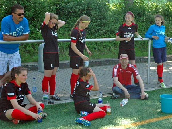Da sich heute alle Mädchen die Note 1 verdient haben, hier auch noch Einzelkritiken. Phyllis hat sich als recht neue Spielerin durch Trainingsfleiß zum Dauerbrenner entwickelt. Körperlich stark und heute im Zweikampf kaum zu besiegen. Justina hat sich zur Goalgetterin entwickelt. 2 Tore heute, insgesamt 15 Saisontore stehen zu Buche. Hannah M. ist unsere Vielseitige. Ob im Tor, im Abwehrzentrum oder im Sturm, auf sie ist immer Verlass. Siska ist unsere körperlich stärkste Spielerin. Keine Gegnerin kann sie aus dem Tritt bringen. Egal, wo Luna auf dem Platz den Ball bekommt - es besteht immer Torgefahr für die Gegnerinnen. Heute vier, insgesamt 22 Treffer sprechen Bände. Der Ball ist Lynns Freund. Keine spielt einen tödlicheren Pass. Bei Lea sind Tricks gepaart mit Schnelligkeit. Zudem taucht sie katzengleich im Tor in die Ecken.
