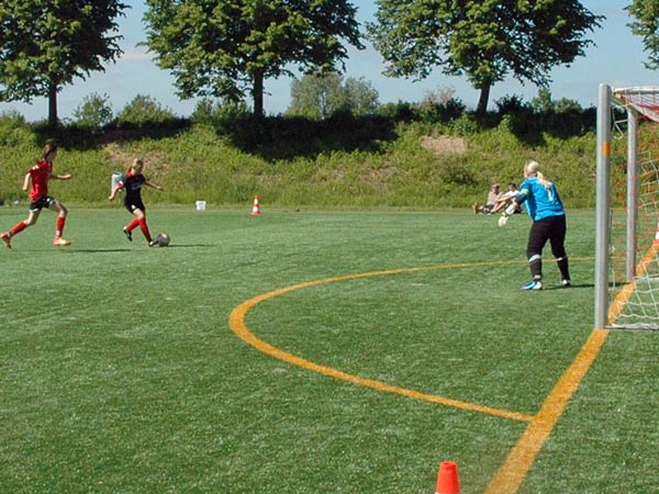 Bei großer Hitze mit nur sieben Spielerinnen durften wir auf Flintbeks Kunstrasenplatz ran. Dadurch hatten wir nicht nur Flintbek als Gegner, sondern auch den Kräfteverschleiß ohne Wechselspielerin. Somit war Wasser unser bester Freund und alle Trinkflaschen und ein Eimer Wasser zum Abkühlen standen am Spielfeldrand parat. Die Devise war klar, auf dem perfekten Boden mussten wir unsere technischen Fähigkeiten einsetzen und Ball und Gegnerinnen laufen lassen.