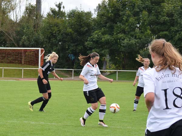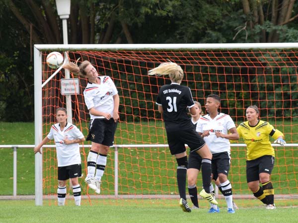 "Neues Spiel, neues Glück" sollte unser Motto sein für das heutige Spiel gegen den TSV Schönberg. Wir wollten wieder mutig sein und ein hohes Risiko spielen, Chancen ergaben sich in den ersten 5 Minuten direkt 3 Stück. Erste 1-gegen-1-Situation von Luna, die von Lisa in Szene gesetzt wird - leider pariert die starke Torfrau. Zweite Aktion mit Lisa wiederum im 1-gegen-1 und auch sie scheitert. Dann die größte Gelegenheit zur Führung: Drei Abschlussversuche scheiterten, ehe der Ball geklärt werden konnte. Auch in der Folge kamen wir immer wieder vor das gegenerische Tor. Schönberg kam ausschließlich durch Standardsituationen zum Zug. Bezeichnend dann das 1:0 für Schönberg mit dem Halbzeitpfiff. Begreifen kann man sowas irgendwie nicht. Uns erschien der Zwischenstand ungerecht für den großen Aufwand, den wir betrieben haben und die gute Qualität, die wir an den Tag legten.