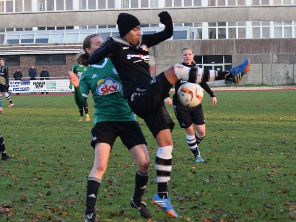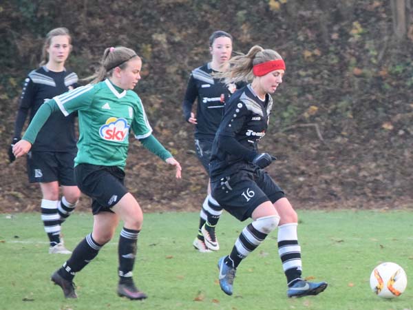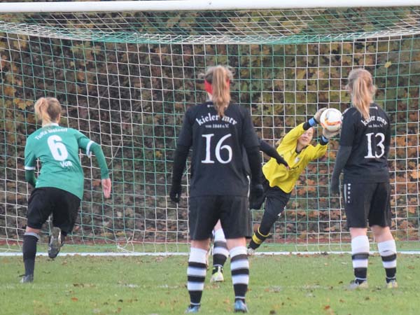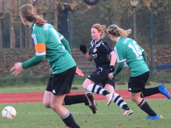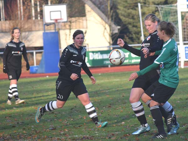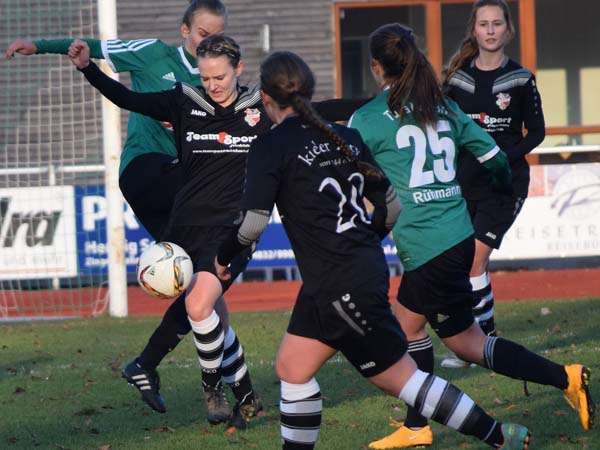 Meldorf bekam in der ersten Halbzeit kaum Zugriff zum Spiel, wir agierten gedankenschneller und hatten drei Möglichkeiten zur Führung. Ein Elfmeter in der 25. Minute jedoch brachte uns ins Hintertreffen. Zweimal musste Annika parieren und hielt uns so im Spiel. Unglücklich war eine Aktion des Unparteiischen: Eine Tätlichkeit von Meldorfs Mittelfeldspielerin gegen Franziska wird vom Schiedsrichter gesehen, aber erstaunlicherweise nur Gelb geahndet.