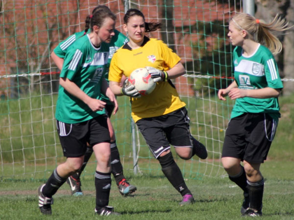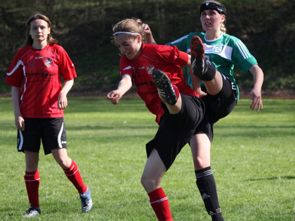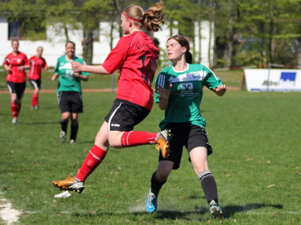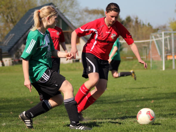 Heute ging die Reise nach Dithmarschen, wo wir auf gut aufgelegte Meldorferinnen trafen. Wir hielten wirklich stark mit, auch wenn wir in unserer Zuordnung viele Schwierigkeiten hatten. Meldorf spielte clever und schnell in die Spitze und so mussten wir das 0:1 in der 31. Minute hinnehmen. Was das spielentscheidende 0:2 angeht, so muss ich leider sagen, dass ich einiges nicht verstehe. Meldorfs Angreiferin Birte B. geht im Fünfmeterraum ins 1-gegen-1 mit unserer Johanna und beide bleiben nach dem Zusammenprall am Boden liegen. In Erwartung des Pfiffes zum fälligen Freistoß bleiben alle etwa fünf Sekunden lang stehen, zumal beide Spielerinnen regungslos am Boden liegen. Plötzlich nimmt sich eine Meldorfer Spielerin den Ball, der neben ihrer reglosen Mannschaftskameradin liegt und schießt ihn ins Tor. Die Schiedsrichterin gibt das Tor und Meldorf jubelt. Die verletzte Meldorferin liegt weiterhin am Boden, wofür sich niemand so wirklich zu interessieren schien. Eine absolut unverständliche Situation, aber wir lagen nun 0:2 zurück und es ging kurze Zeit später in die Pause. Im zweiten Durchgang waren wir besser sortiert und kamen auch besser ins Spiel. Meldorf investierte nicht mehr als nötig und uns boten sich gerade nach dem 0:3 (48.) einige gute Möglichkeiten durch Sabeth, Johanna S. und Nicole. So endete dieses Spiel und wir wünschen Birte B. gute Besserung!