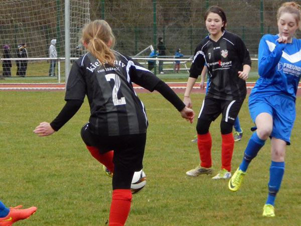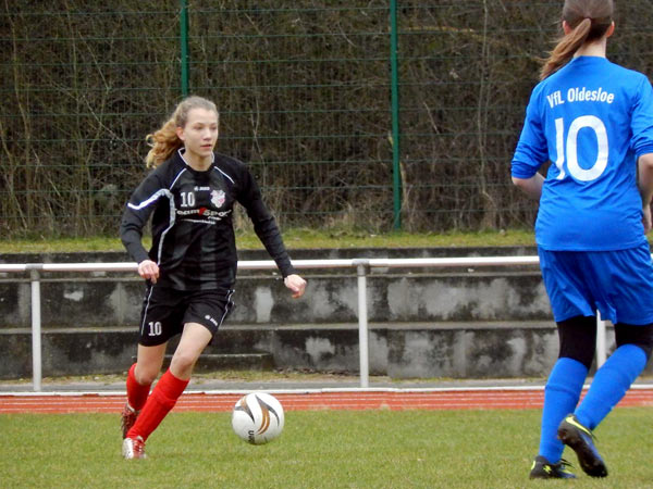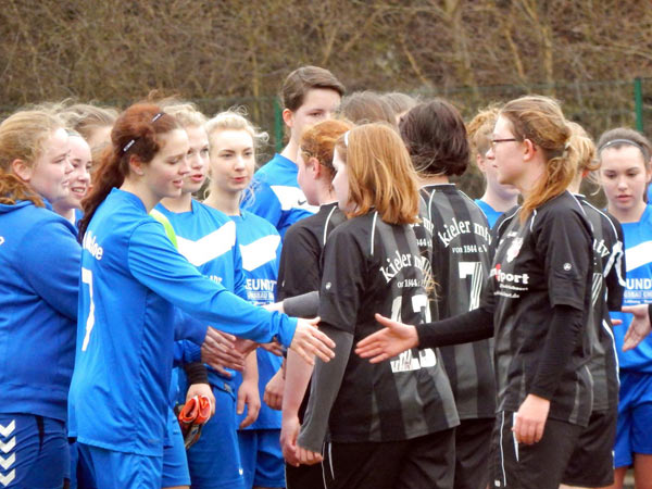 Nach zahlreichen Absagen standen uns nur 12 Mädchen beim Auswärtsspiel in Oldesloe zur Verfügung, womit wir uns mit einer Wechselmöglichkeit begnügen mussten. Der Gegner löste seine Aufstellungsprobleme, indem er nach oben guckte und von den 1. B-Mädchen (Tabellenführer der S.-H.- Liga) drei Spielerinnen aus dem erweiterten U16-Landesauswahlkader nach unten zog.